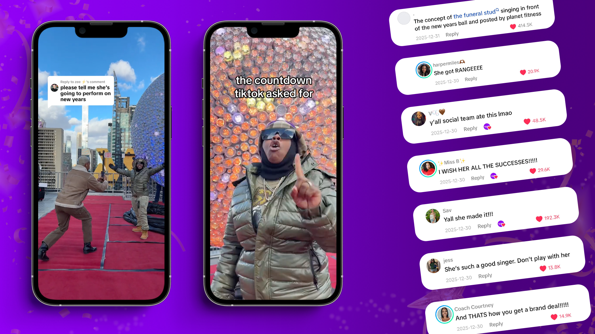 When viral sensation Neace Robinson's "1, 2, 3… release 'em" line became the people's choice for the Ball Drop countdown, we didn't just acknowledge the trend. We flew her to Times Square and let her lead the “funeral for 2025.”