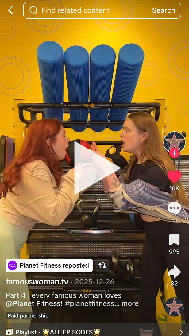 Based in LA, Famous Woman TV is a sketch comedy group known for their sharp, weekly sketches that capture the absurdity of modern life. Their strength lies in their ensemble chemistry and their ability to spin relatable social dilemmas into high-engagement content. We partnered with them on a video for Planet Fitness, where each member was making elaborate excuses to avoid hanging out (like navigating a sudden breakup) just so they could hit the gym instead.