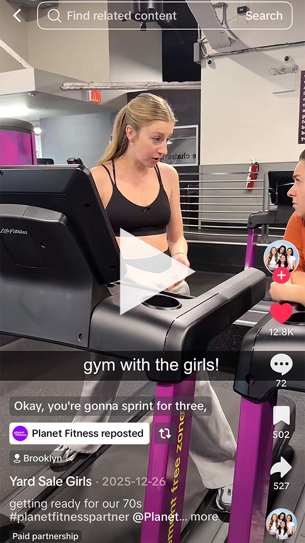 This Brooklyn-based sketch comedy powerhouse featuring Serah Bennett, Micaela Fagan, Becca Marcus, and Sam Speedy has mastered the art of viral, character-driven humor. With over 40 million views across platforms and a growing presence in the live comedy scene, they excel at turning everyday scenarios into comedic gold. We collaborated with them on a "gym with the girls" video for Planet Fitness, where they used their signature casual, witty banter to make a workout experience feel both fresh and funny.