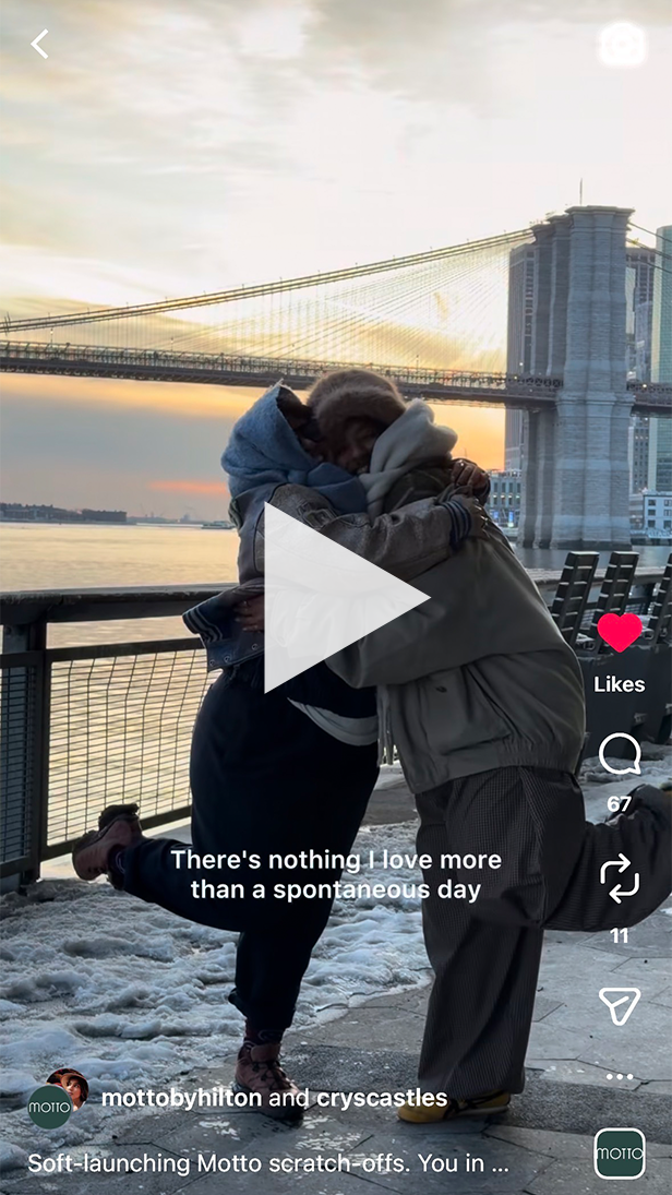 We’ve tapped her as an on-screen personality for Motto by Hilton, where her natural charisma and ability to navigate city culture made her a standout.
